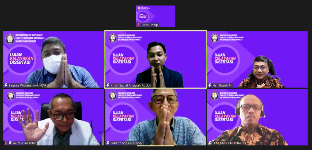 Tuesday, July 26, 2022, the Doctor of Public Health Faculty of Public Health Universitas Diponegoro has carried out the Dissertation Eligibility Examination on behalf of the promovenda Krish Naufal Anugrah Robby. This activity is carried out online via Zoom. In this implementation, as the chief examiner is Dr. dr. Bagoes Widjanarko, M.PH. as the Head […]